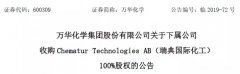 稳坐全球MDI龙头!万华化学收购瑞典国际化工100%股权