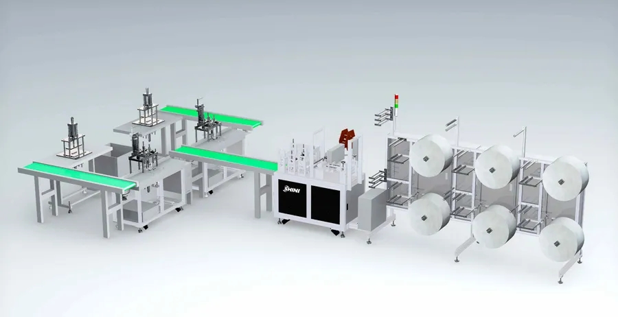 鉴于新型冠状肺炎疫情在全球的大范围持续传播,为防疫物资的生产带来了极大的挑战,其中最基本的防护用品口罩的需求成几何倍数的增加。做为一家行业内全球知名的设备生产商,信易自动化事业处快速反应,继推出SMKS全自动一拖二平面口罩机后,全新推出N95/KN95口罩生产设备,主要用于N95/KN95口罩成型,整卷布料放卷后经过滚轮驱动上料,布料通过自动上料,鼻梁条整卷牵引开卷,定长裁切后导入至包边布料中。口罩外形通过超声模具滚焊,焊接封边,经滚切刀裁切成型,通过滚筒将成型的口罩进行输出,再由人工用超声波焊接耳带,最后对口罩进行封边,标准整套设备:打片机x1+封边机x2+耳带机x2。