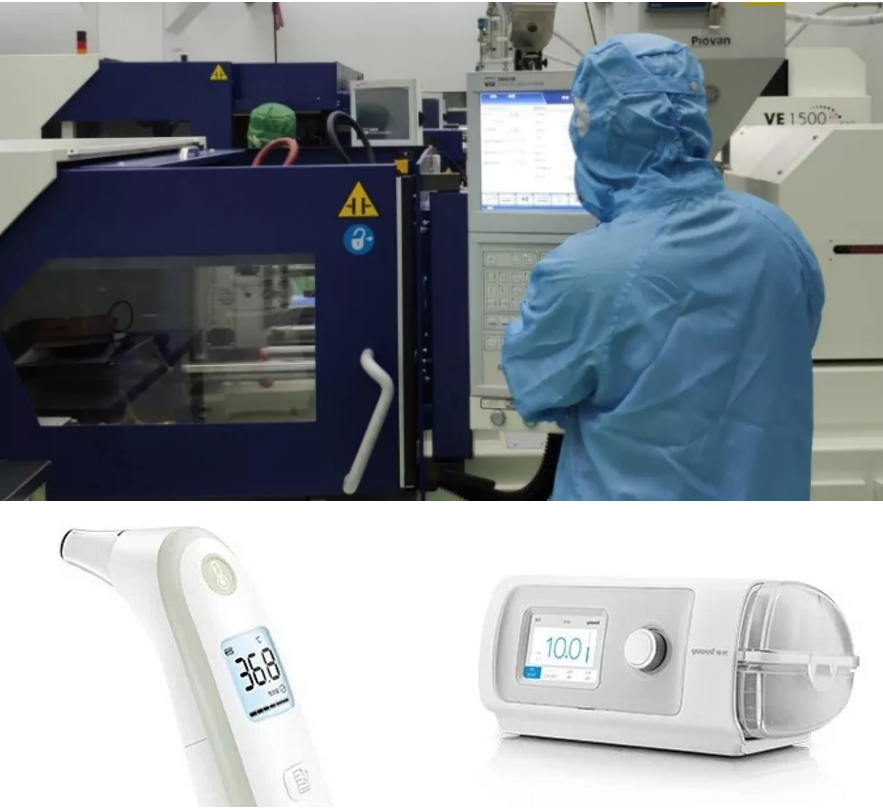 此外,这次疫情中,作为居民必备品的口罩和护目镜需求量急剧增加,相关企业夜以继日地赶制。部分专业级口罩上的塑料呼吸阀是一个对精度要求高的部件,在一些专业生产口罩的医疗企业里,长飞亚设备也担纲重任,以高精度的呼吸阀守护着人们的健康安全。