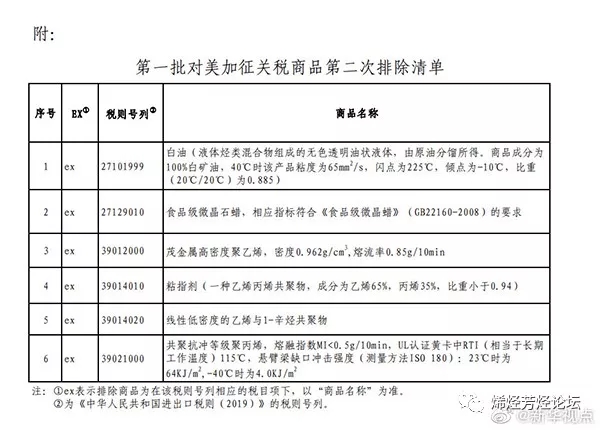 茂金属HDPE、聚丙烯等6类化工产品不再加征进口关税!