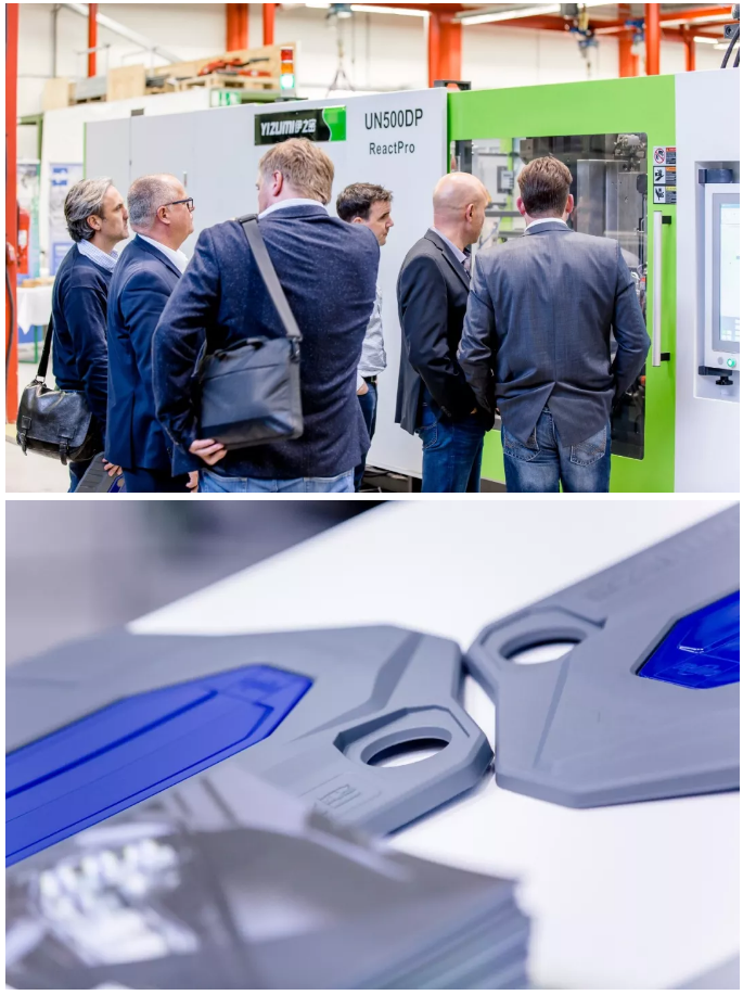 ????????伊之密与合作伙伴Frimo提供的ReactPro方案,将注射成型与聚氨酯(PUR)包覆工艺结合在一起,更简单、更模块化、更灵活、更具成本效益。在Frimo总部举行的联合技术开放日上,第一套高度集成和自动化的ReactPro系统亮相,现场生产带聚氨酯表面的发动机盖,吸引了不少感兴趣的专业观众。