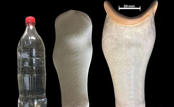 ????????据外媒报道,来自英格兰德蒙福特大学的Kandan博士研发出了一种用废塑料制成的假肢接受腔,他将塑料水瓶废料磨碎,用所得材料纺成聚酯纱线,然后将其加热并模塑制成。目前高质量的假肢接受腔可能花费大约5000英镑,而由塑料废物制成的东西每只成本大约只需10英镑。