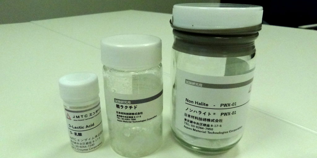 ????????然后,关于用于医疗应用的生物可吸收材料和可生物降解树脂,JMTC已经建立了具有高光学纯度的D-乳酸的工业生产技术。D-乳酸是聚(乳酸-共-羟基乙酸)(PLGA)和聚乳酸(PLA)等的原料。基于AGC公司开发的基因改造技术(TYO:5201),JMTC已经建立了一种从植物中获得这种D-乳酸的小批量生产方法。
