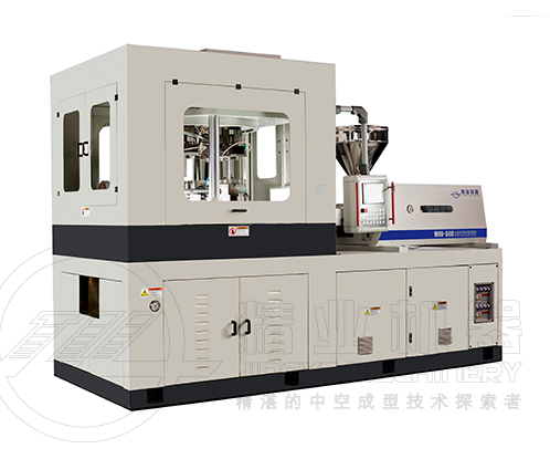 ????????该机型采用三工位结构,即第一工位注射瓶坯,第二工位拉伸吹瓶,第三工位脱瓶,其优势在于管坯注塑成型后,利用自身所保留的热量,直接进行拉伸吹塑,避免了管坯先要冷却,损失热量,然后再加温,能量反复消耗的缺点。产品只一次成型,没有中间转运环节,彻底杜绝管坯相互碰撞的可能性,保证了极高的外观质量。