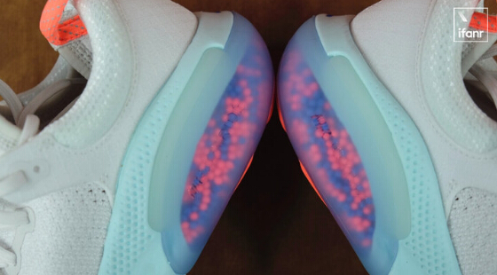 ????????作为这个技术的核心,相信大家也看到了,就是鞋底里的无数个彩色小球。耐克表示,他们从 150 多种材料里面寻找,终于找到了这个名为 TPE 的材料。听起来挺不容易的,但是想到爱迪生为了发明电灯尝试了 1600 多种材料,还是一个人在尝试,所以这么看耐克这么大公司的这个尝试也还能接受。