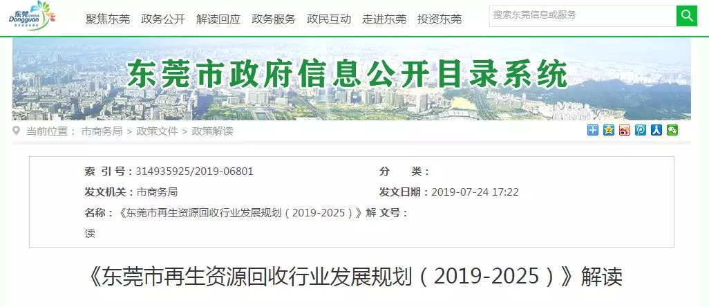 ????????7月24日,东莞市商务局对《东莞市再生资源回收行业发展规划(2019-2025)》进行解读,进一步规范再生资源回收行业发展