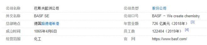 公开资料显示,巴斯夫成立于1865年,是世界领先的化工公司,总部位于德国莱茵河畔的路德维希港,它是世界上工厂面积最大的化学产品基地。巴斯夫向客户提供一系列的高性能产品,涵盖化学品、塑料、特性产品、作物保护产品以及原油和天然气。一体化(Verbund)基地是公司的优势所在,生产装置与技术平台智能互联,从而能够高效地使用资源和发挥专长。在全球各地的研发部门拥有约10,000名员工,是保障巴斯夫创新能力和竞争力的坚实后盾。