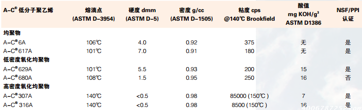 霍尼韦尔AC316A氧化聚乙烯蜡技术与应用,性能指标类型高密度氧化均聚物