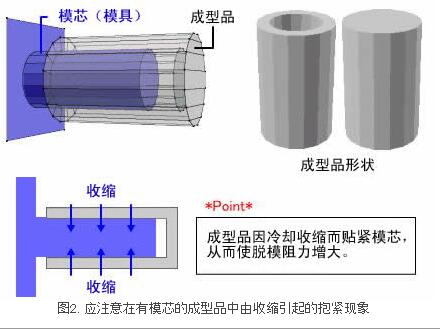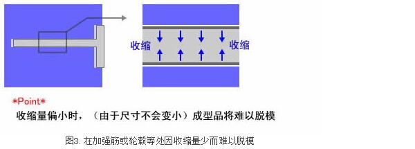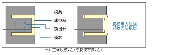 3、在成型条件上,模具温度偏低且保压偏大时容易引起脱模不良。
