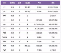 常用塑料的简易燃烧鉴别方法 对于普通的塑料品种利用燃烧方法即可比较准确鉴别。燃烧时的火焰颜色、气味以及离火后的状态等可以作...