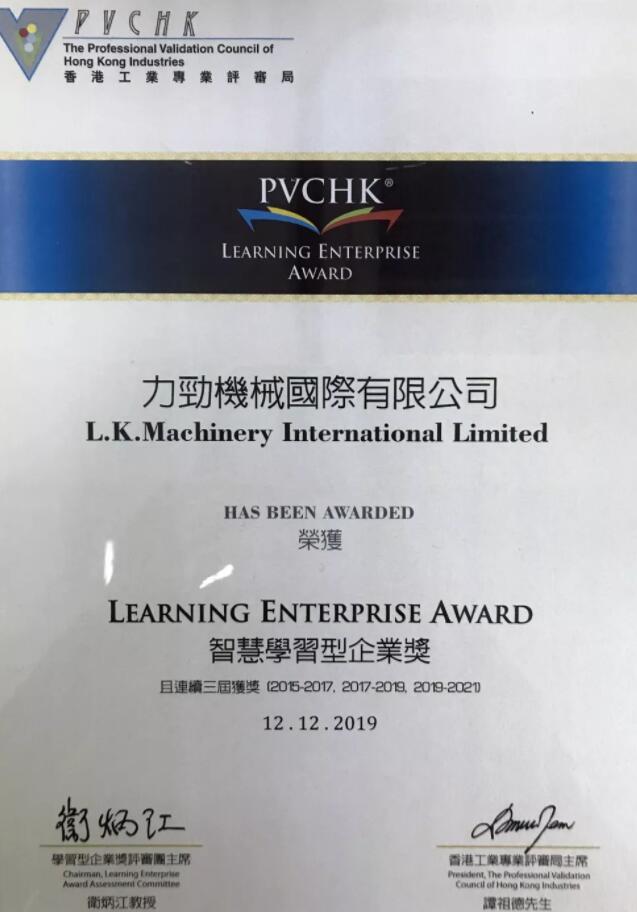 ????????经过自我评估、评审专员初评和独立终审委员会专家的最终客观审定,力劲集团在“资源投入推动人才培训”、“系统化管理人才发展”、“资讯科技应用”、“策略运用”、“企业文化”五个标准、五十项细节方面达到评审标准,荣获“2019智慧学习型企业奖”。力劲集团CEO刘卓铭先生、董事会主席张俏英女士出席颁奖典礼。