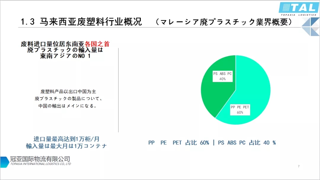 ????????目前马来西亚废塑料进口量是东南亚最大的。据海关统计每月有10000个集装箱进口。