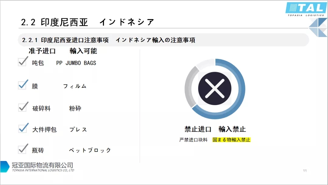 ????????印度尼西亚块料不让进, 吨包,95膜,破碎料,大件押包,瓶砖,可以进口。2019年进口清关都很顺畅,特别是巴淡免税岛,清关成本只有300美金一柜,大量PE膜从世界各地发往巴淡港,最高峰一个月巴淡岛进口了5000柜左右。