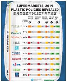 ????????在2019年减废表现排行榜中,Waitrose和Morrisons在减少整体塑料足迹方面表现最佳,他们致力于推广无包装和可重复使用解决方。