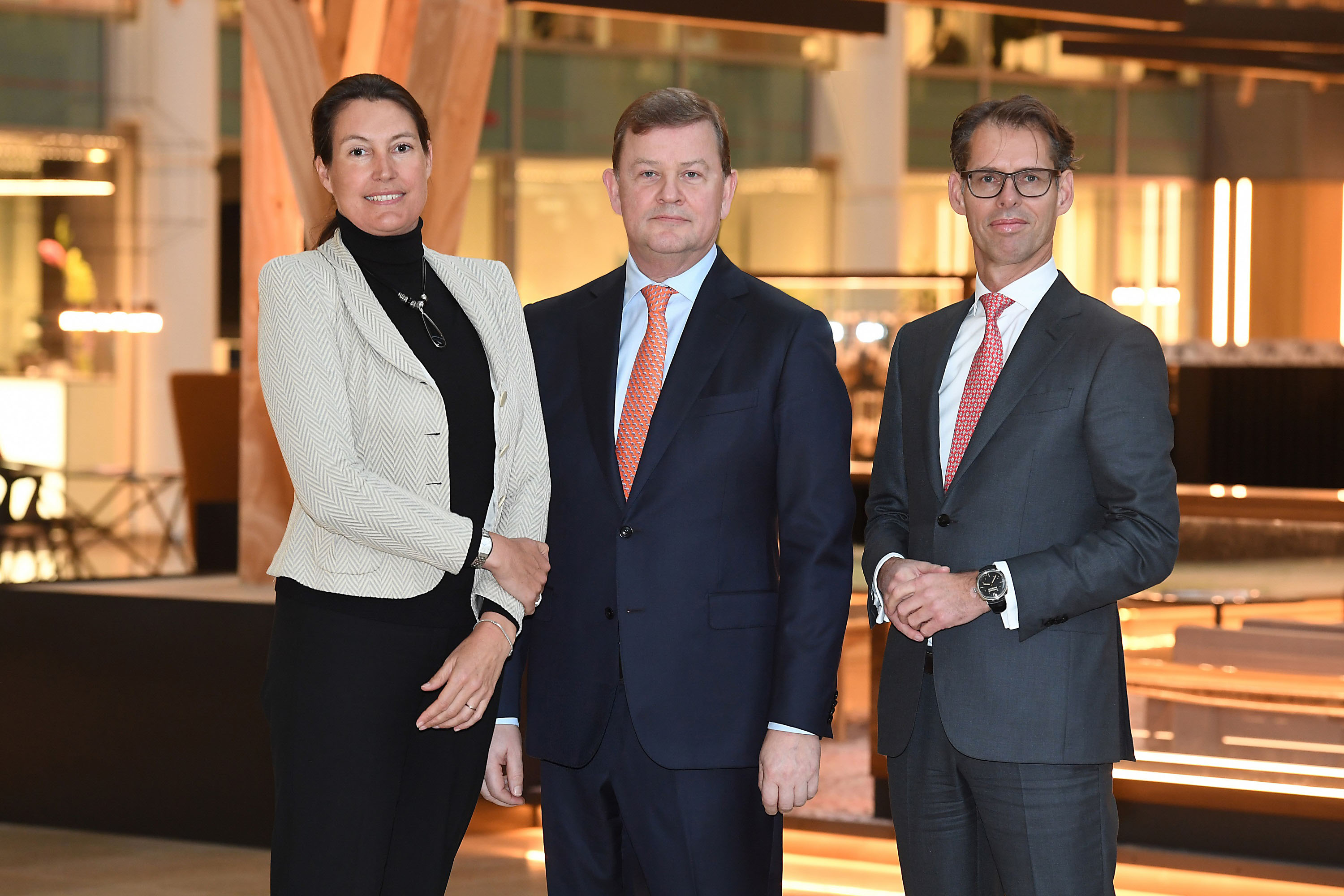 现任全球首席执行官谢白曼先生(Feike Sijbesma;中)与董事会成员马洁岚女士(Geraldine Matchett;左)和傅瑞德先生(Dimitri de Vreeze;右)