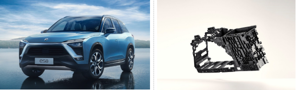 图左:?车身流畅、色彩明快的新一代新能源汽车NIO ES8将亮相北欧化工和博禄以及诺瓦化学在2019 K展的联合展台。