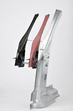 ????????此类A柱中包含由高强度钢制成的嵌件,该嵌件的内部支撑物为由聚酰胺-6基TEPEX Dynalite 102-RG600(2)/47%制成的成型坯料及由Durethan AKV30H2.0制成的加强筋结构,其中Durethan AKV30H2.0的主要原料是聚酰胺66和短玻璃纤维。