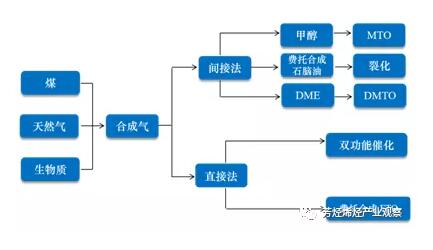 ????????近年来,为缓减对石油资源的依赖,促进煤炭与天然气资源的高效利用,国内外关于烯烃生产技术的研究主要以非石油路线为主,即利用煤炭或天然气资源直接或间接制备烯烃。由于我国能源结构“富煤贫油”的特点,伴随MTO/MTP技术突破,煤经甲醇制烯烃(CTO)迅速成为主流工艺。