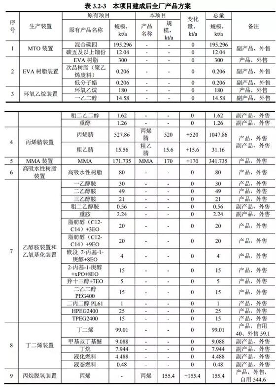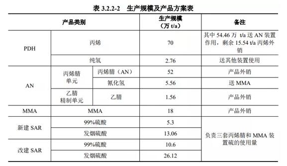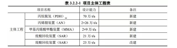 ????????据介绍,该项目主要建设内容为:扩建项目新建70万t/a丙烷脱氢装置、两套26万t/a丙烯腈装置、两套9万t/a MMA装置及一套21万t/a SAR装置,同时改建现有项目中一套23万t/a SAR装置,扩建项目所有生产装置均在斯尔邦预留用地上。