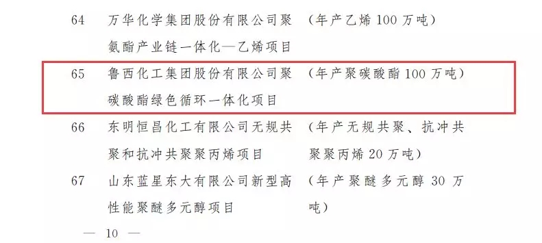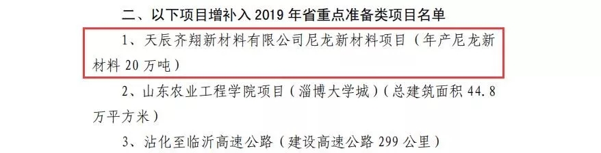 ????????近日,山东省发改委公布了关于调整2019年省重点项目调整的通知,主要涉及项目进出的调整,其中增补了7月25日公布的天辰齐翔100万吨尼龙66新材料项目入选,而鲁西化工100万吨聚碳酸酯PC项目退出。早在7月23日,山东省发改委发布通知:关于2019年省重点项目中期调整的通知。