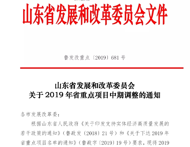 (2019年1月23日山东省重点项目名单)