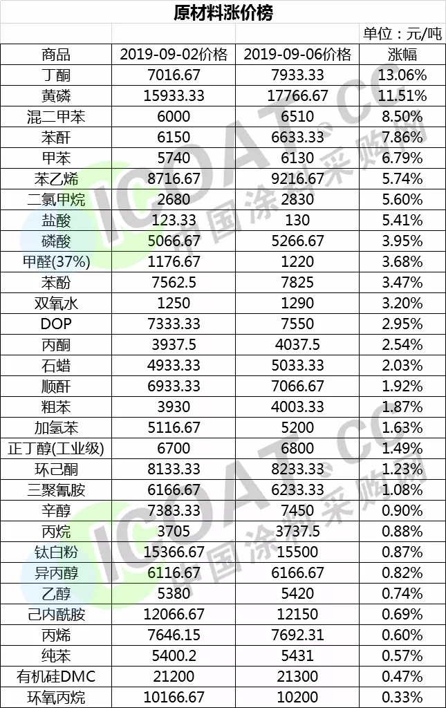 ????????(以上数据来源于涂料采购通,如有差池,请以实际数据为准!)