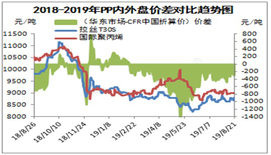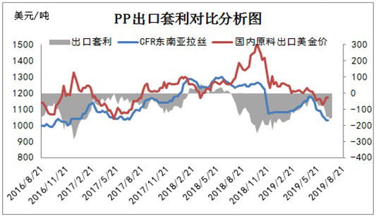 ????????面对国内PP产能激增时代,无论是贸易还是生产企业都在谋求出路,于是出口成为多数业者最佳选择。由PP出口套利对比分析中发现,以CFR东南亚拉丝为例,国内PP拉丝产品出口到东南亚价格仍高于当地价100-150元/吨,而且照目前两者价差发展趋势发现,国内市场在8月底至9月初正是下游需求逐步恢复之际,国内价格有抬高可能,短期仍不适合开启出口窗口。