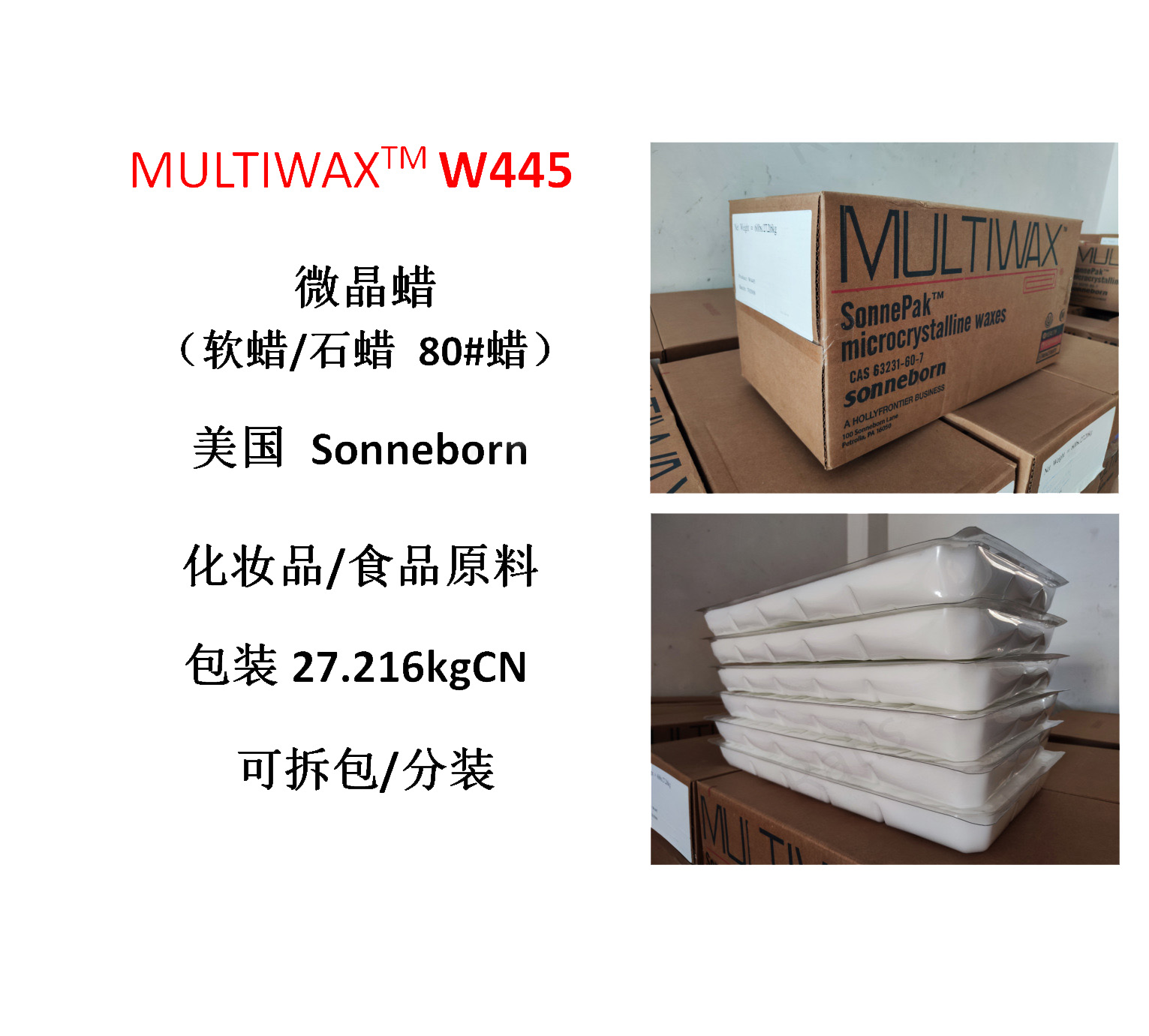 W-445微晶蜡(软蜡)为白色或块状体,无臭、无味、非极性饱和烃,防水,电绝缘,针入度大,溶点高,柔韧性好。主要适用于环保蜡烛,蜡笔,蜡像,雕塑,化妆品中的润唇膏,睫毛膏等,食品中的口香糖胶基,水果蔬菜保鲜,医药,防潮防腐,粘结,上光,铸模,电子,绝缘,复写纸等等。