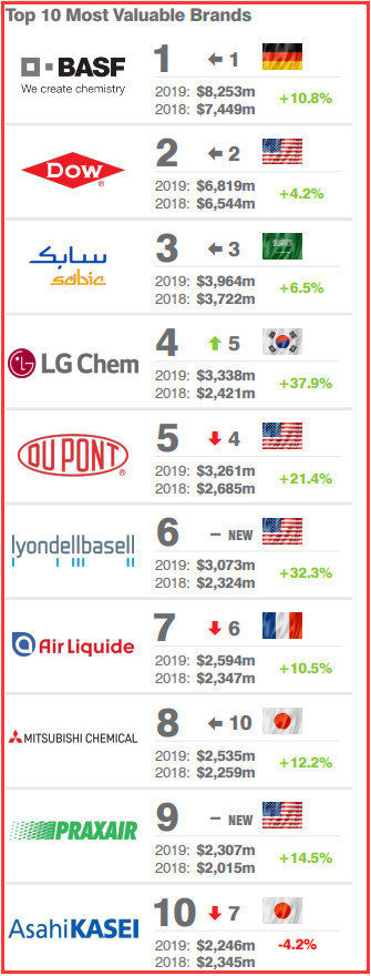 2019全球最有价值十大化学品牌,沙特基础工业公